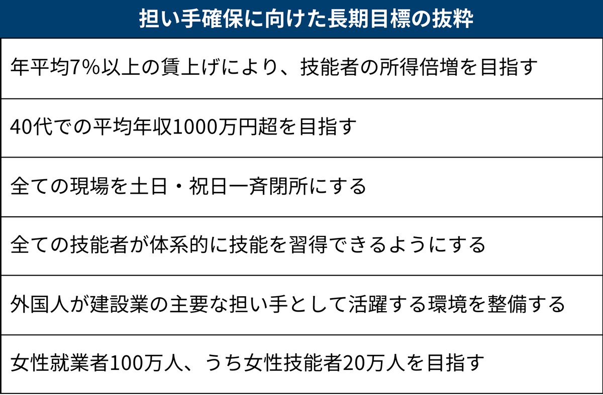 担い手確保に向け、年収や休暇、人材育成などについて、35年度までの目標を設定した。